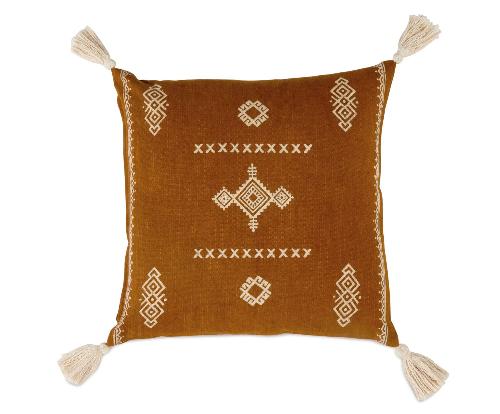 Ver todos los detallesEste cojín cuadrado para el sofá es de algodón y de color marrón con un toque anaranjado. La funda del cojín tiene un estampado geométrico en color...