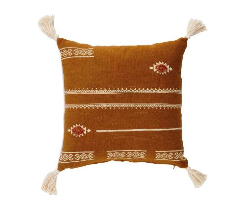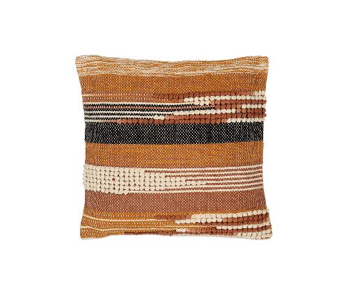 Ver todos los detallesCojín cuadrado de algodón que mezcla tonos tierra como marrones, beige y blanco con alguna pincelada negra que le aporta carácter. Combina diferent...