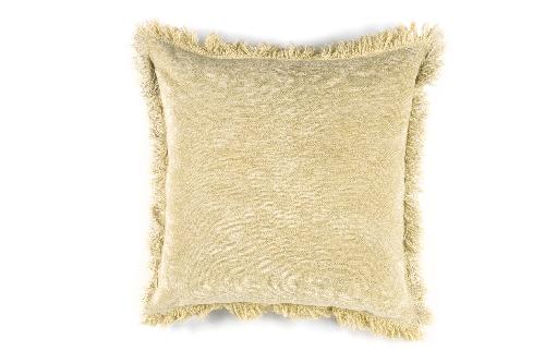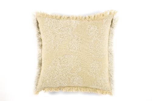 Ver todos los detallesEste cojín de algodón tiene forma cuadrada, con flecos en el contorno, con un estampado de cenefas orgánicas en la parte frontal y liso por la part...