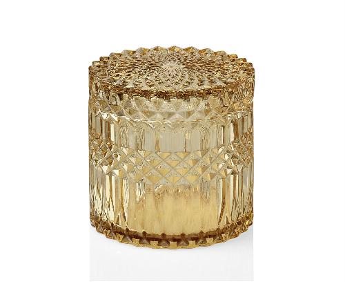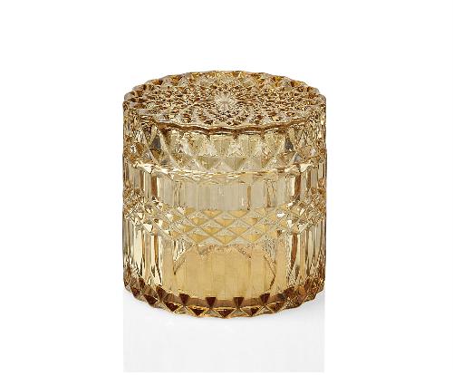 Ver todos los detallesEsta caja alta de vidrio está inspirada en formas y colores clásicos y atemporales, como el cristal tallado y las ornamentaciones doradas. Es cilín...