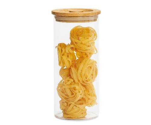 Ver todos los detallesBote cilíndrico de cristal para guardar alimentos. Con tapa de madera de bambú que se cierra a presión con silicona. Ideal para guardar alimentos a...