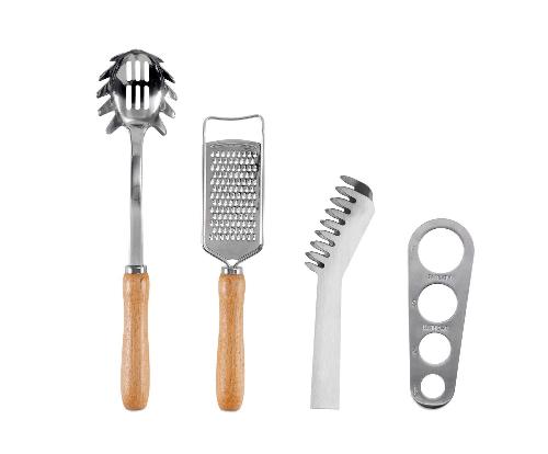 Ver todos los detallesConjunto de utensilios de cocina para pasta.Contiene un cucharón para espaguetis con agujeros para escurrir el agua, un rallador con mango de mader...