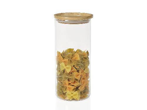 Ver todos los detallesEste bote de cristal cilíndrico con tapa de madera asegurada a presión está disponible en tres tamaños, y este es el más alto. Se trata de un reci...