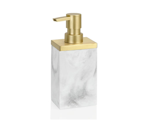 Dosificador para jabón de poliresina con acabado y pulido efecto mármol. Con válvula cuadrada de zinc de alta resistencia y muelle interior. Es nec...