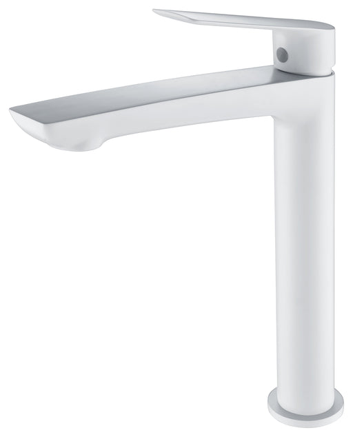Grifo de lavabo alto serie LUXOR fabricado por Imex en acabado blanco mate, cuerpo de grifería de latón blanco mate, cartucho cerámico de 25mm, inc...