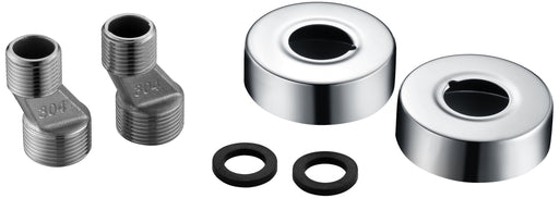 Juego de excéntricas redondas fabricadas en latón y embellecedores redondos cromados.
