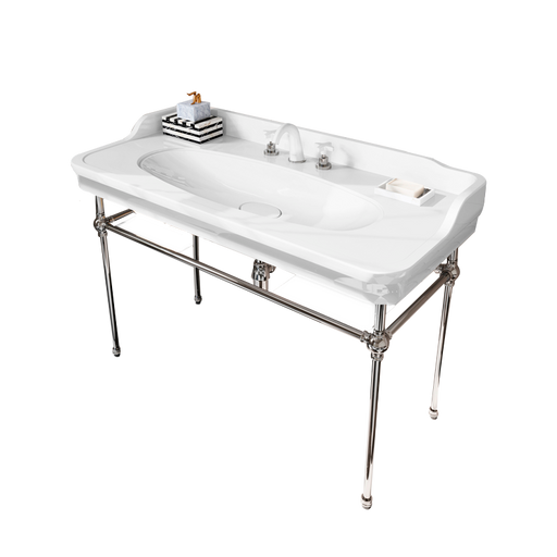 Ver todos los detallesLavabo de porcelana blanca brillo para instalación sobre patas metálicas incluidas de la serie APOLO de Valadares. Fabricado en Portugal. Acaba...