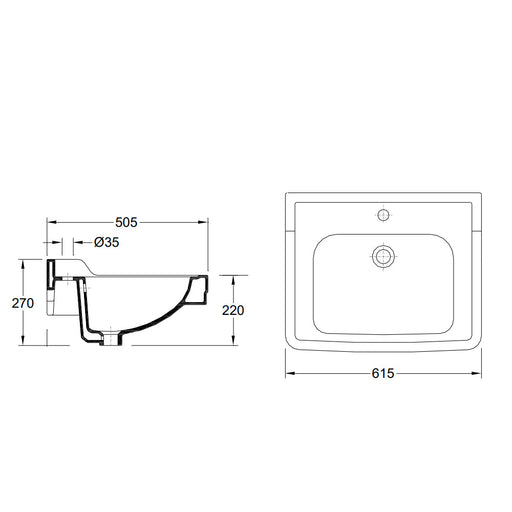 Lavabo Porcelana OLEA Rectangular 490x400x145 mm Lavabo fabricado en porcelana blanca sanitaria.
