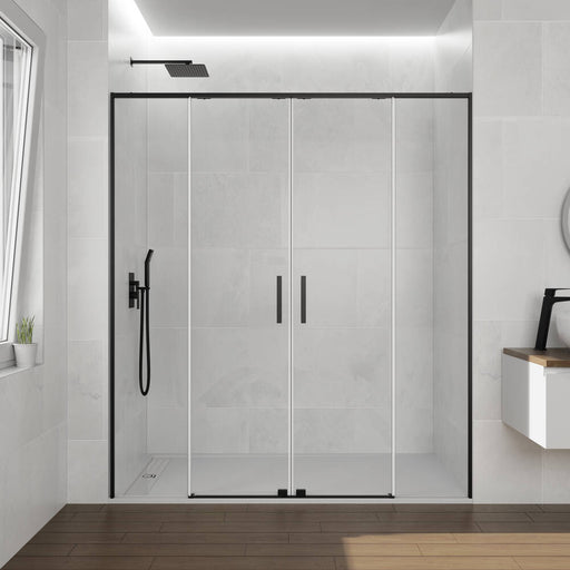 Ver todos los detallesMampara para plato de ducha rectangular de la serie NIXON de Bathme compuesta por dos hojas fijas y dos puertas correderas con apertura desde el vé...