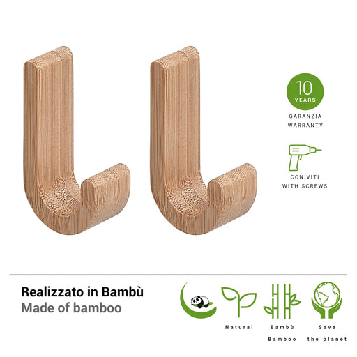 Percha de la serie HIMALAYA fabricado por Gedy. Características:100% Bambú ecológico.Fijación a la pared con tornillos.Set compuesto de dos perchas...