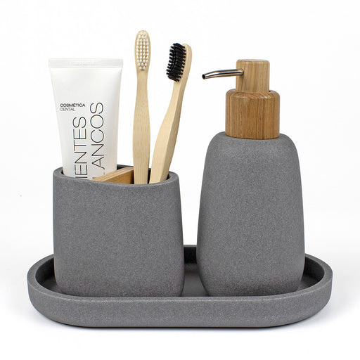 Dispensador de baño de resina negro fabricado por Andrea House. Medidas: 7,5 x 6 x 17 cm.
