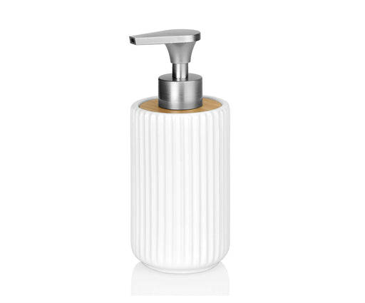 Dispensador de baño de cerámica blanco fabricado por Andrea House. Material: Cerámica + ABS.Medidas: 7 x 17,5 cm.