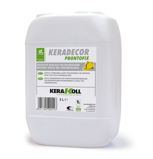 KERADECOR PRONTOFIX NEUTRO de Kerakoll.Primer fijador a base de resinas acrílicas puras y elevado poder conglomerante. Envase: bidón de 5 l.