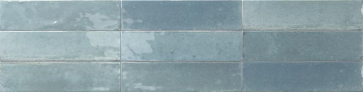 Azulejo porcelánico, formato 7x28 cm, en una tonalidad azul claro con acabado ultragloss y aspecto destonificado. Dune presenta Agadir, una serie d...