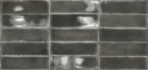 Revestimiento en formato 6,9x24 cm y con un brillo profundo que refleja la intensidad y profundidad de las rocas oscurecidas y el carbón de las ant...
