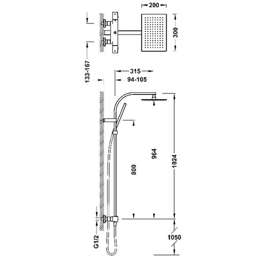 Ver todos los detallesT-SQUARE Columna termostática telescópica para ducha con repisa de Roca Sanitarios. Incluye rociador de 360x240 mm, ducha de mano de 130 mm de 4 fu...