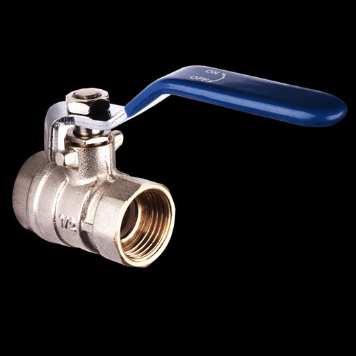 Llave de palanca fabricada en latón. Cuerpo y bola de latón. Maneta azul revestida de goma. HH2"-1/2".Se suministra a granel.