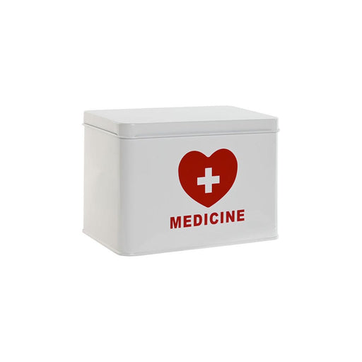 Botiquín para el hogar de metal color blanco con corazón rojoCapacidad: 4LMedidas:Alto:14 cm.Ancho:20,5 cm.Fondo:12,5 cm.