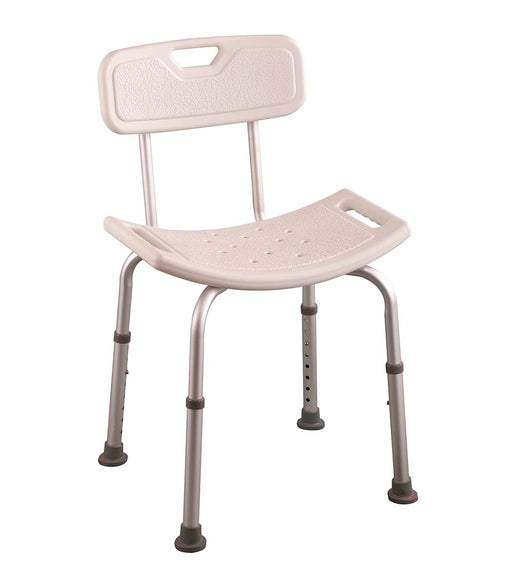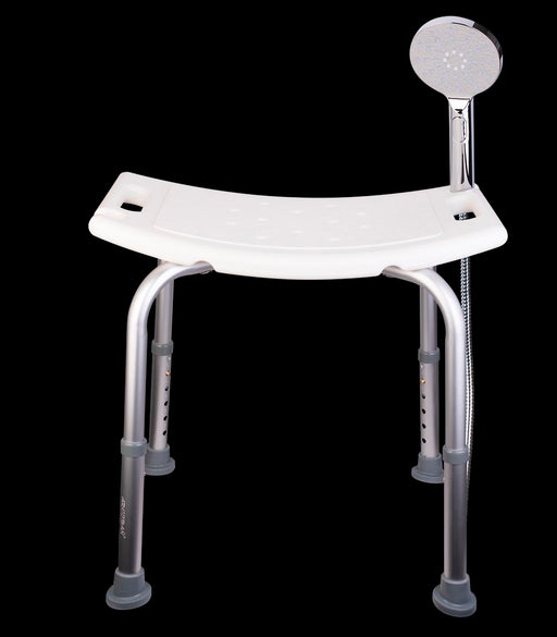 Asiento ABS blanco. Patas antideslizantes. Regulable a 6 alturas. Patas en aluminio numeradas. Hendidura para colocar el mango de ducha.(mango duch...