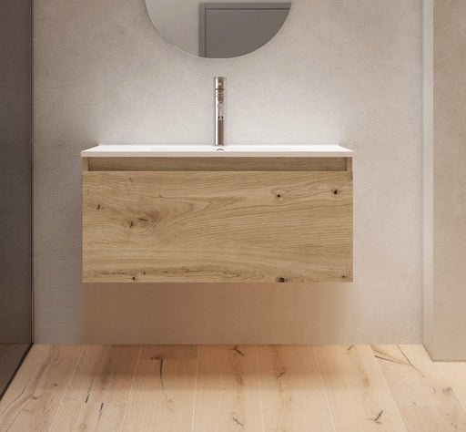 Ver todos los detallesMueble de baño suspendido con 1 cajón de 40 cm de la serie BOX de Visobath. Acabado laminado roble costa. Pack mueble+lavabo: Mueble suspendido de...