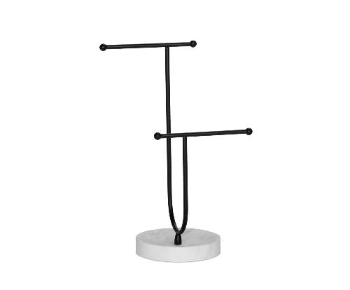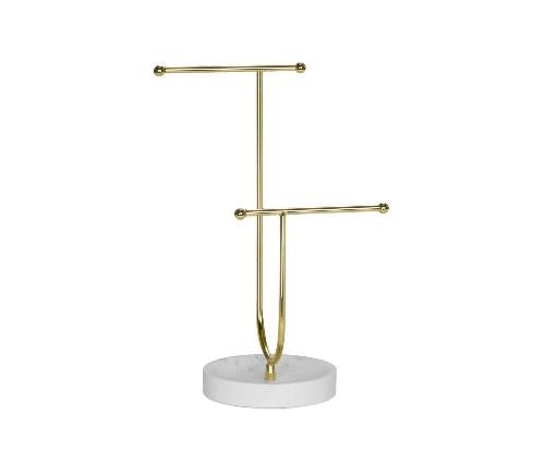 See all the detailsEste joyero de pie está compuesto por una bandeja efecto mármol de color blanco y una estructura metálica para colgar las joyas dorada con acabado ...