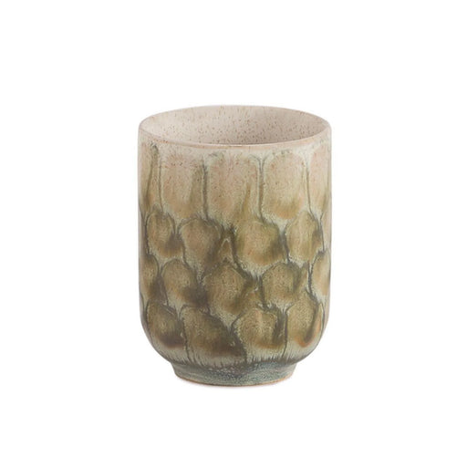 Round toothbrush holder cup made of granular polyresin. Designed by Andrea House. Measurements:7.5x10.5 cm.