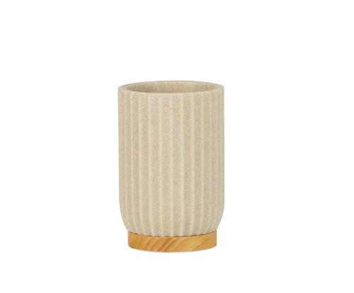 See all the detailsPortacepillos beige hecho de resina y con una base de madera de fresno. Un accesorio de baño elegante y cálido, ideal para cuartos de baño modernos...