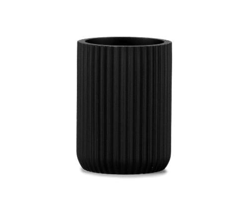 See all the detailsPortacepillos de color negro hecho de poliresina. Tiene forma cilíndrica y relieve estriado en la superficie exterior. Combina con otros accesorios...