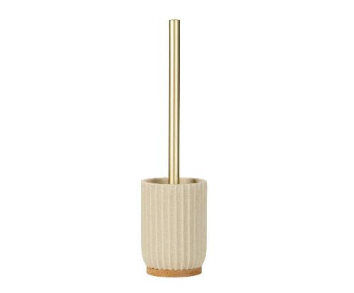 Escobilla de baño de resina beige y madera de fresno en la base. Un accesorio de baño que forma parte de un conjunto, compuesto también por un dis...