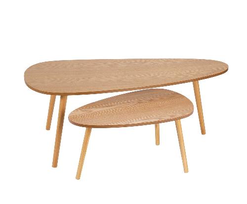 See all the detailsConjunto de dos mesas de centro de madera de estilo moderno. Tienen forma alargada y redondeada por uno de los extremos, como una tabla de surf. El...
