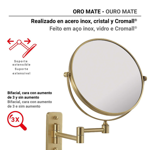 Matte Gold Magnifying Mirror from the GAIA collection by Gedy.Color: Matte Gold.Material: Stainless steel. Glass. Chromall.Installation type: Screw...