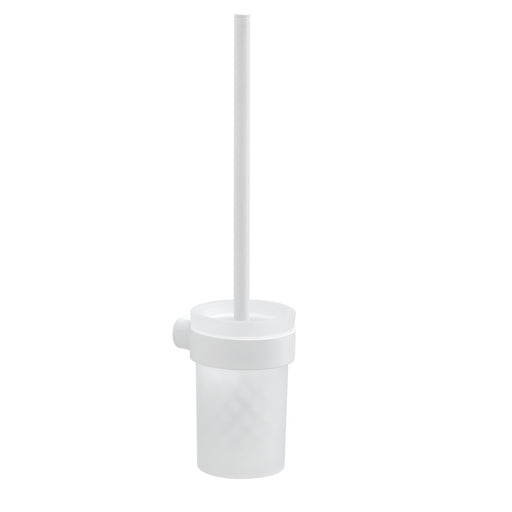 Pirenei Matte White Wall Brush Holder from the PIRENEI series made by Gedy in Italy. Matte white finish. Made of stainless steel, chromall, and glass.