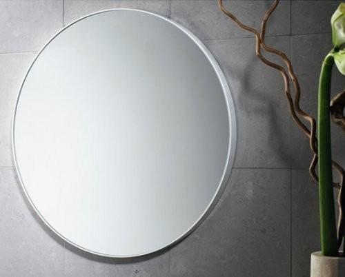 Mirror for bathroom with white plastic resin frame. Measures 60 cm in diameter and 3 cm thick. Mirror made in Italy.