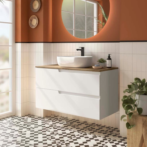 See all the detailsThe NIWA bathroom furniture is a set composed of: 1 piece of furniture with one drawer plus a compartment, a glossy white ceramic sink, and a circu...