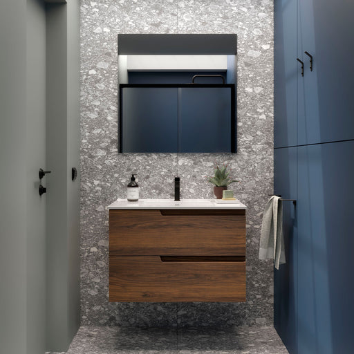 SALGAR BEQUIA Bathroom Furniture with Sink Basin and Countertop 2 Drawers 2 Openings Matte Black Oak