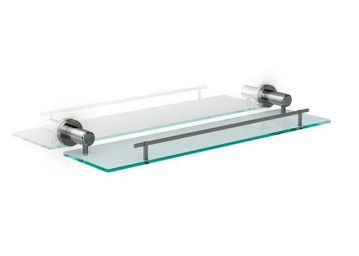 304 Stainless Steel Glass Shelf from the ITÁLICA series by Genwec. Material: Chrome-plated brassProduct sheet and measurement sketch.