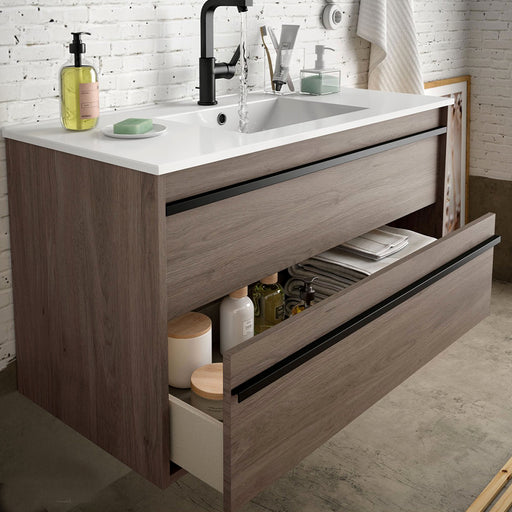 ATTILA bathroom cabinet by Salgar stands out for its characteristic matte black handle. Suspended cabinet with industrial inspiration featuring two...