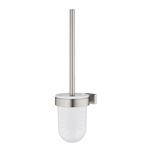 See all the detailsESSENTIALS CUBET wall-mounted toilet brush holder, with glass cup and brass support. Bright chrome finish Grohe StarLight®. Concealed fixing with s...