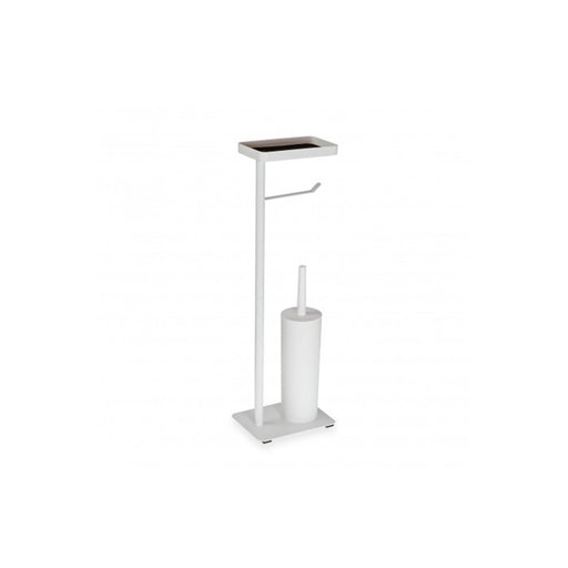 Duo de suelo BLANCO con portarrollos, escobillero y soporte para toallitas WC húmedas, móvil, etc....Fabricado en inoxLargo:20 cm.Ancho:15 cm.Alto:...