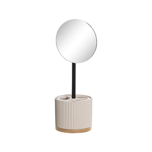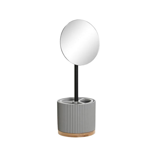 Espejo redondo con organizador de resina color gris3 aumentosDiámetro espejo: 14cmDimensiones:Alto:36 cmDiámetro:12 cm