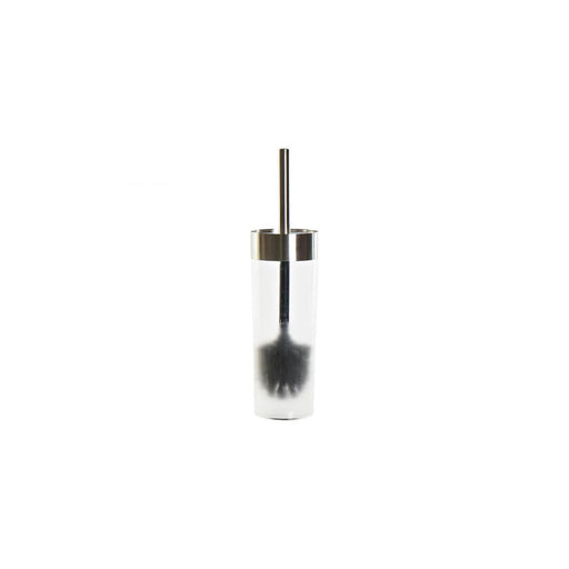 Escobillero transparente y plateadoPalo color cromoMedidas escobillero: Alto: 24,5cm Diámetro: 8,8cm