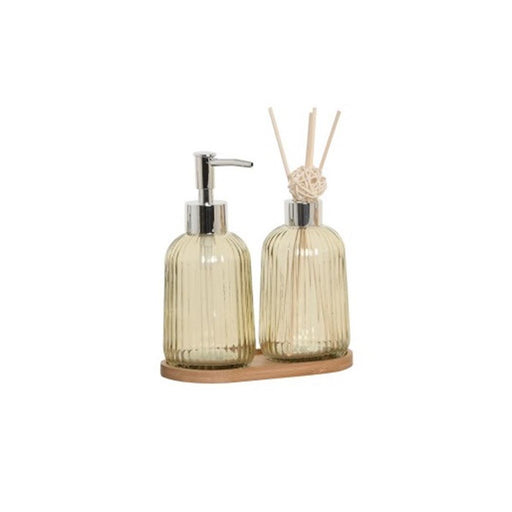 Lote Dosificador + Mikado + bandeja bamboo como soporteFabricado en cristal color amarilloBomba dosificadora color cromoMedidas dosificador:  Alto:...