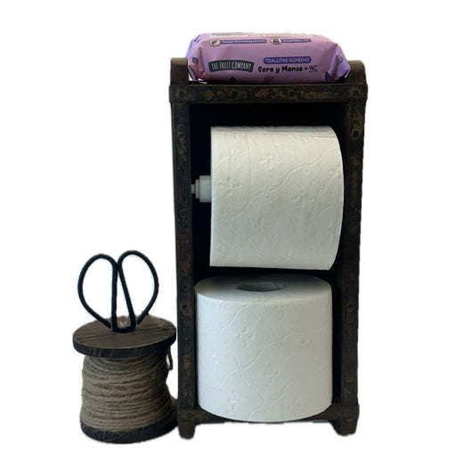 See all the detailsPortarrollos rustico de madera doble.Posibilidad de tener dos rollos a la vez.Repisa superior perfecta para toallitas WC húmedas, el móvil, ambien...