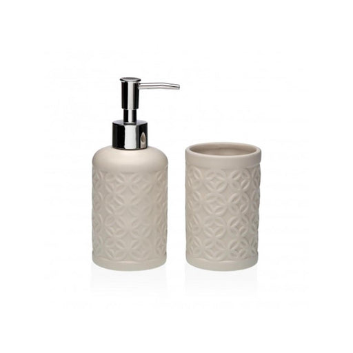 Lote Dosificador + Vaso color cremaFabricado en dolomiteBomba dosificadora Abs color maderaMedidas dosificador: Alto: 17,5cm Ancho: 8,5cmMed...