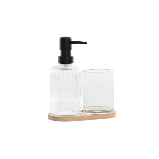Lote Dosificador + Vaso + bandeja bamboo como soporteFabricado en cristal transparenteBomba dosificadora color negraMedidas dosificador: Alto: 17,...