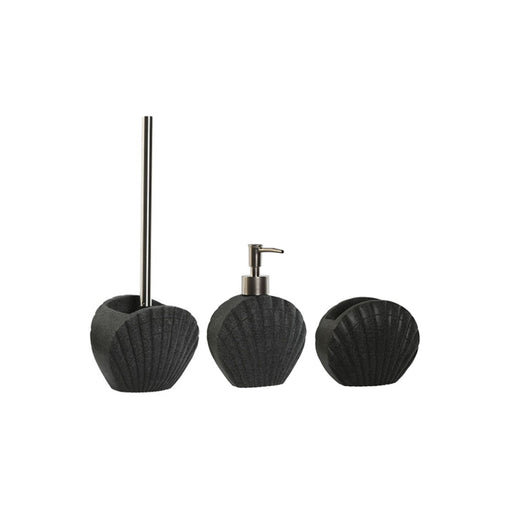 Lote Escobillero + Dosificador + Vaso. Fabricado en resina. Color negro Dispensador color inox mate. Diseño concha del peregrino Medidas Vaso: Alt...