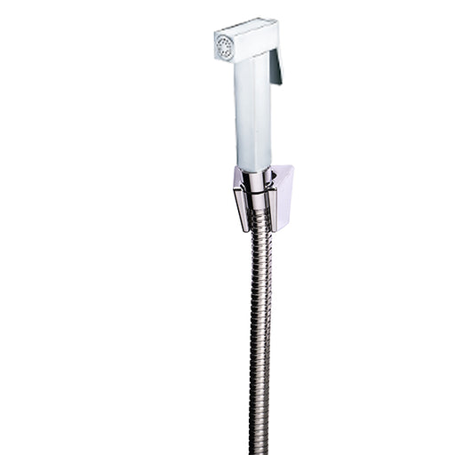Fabricado en latón. Compuesto por:Mango ducha bidet latón DISEÑO CUADRADOFlexo latón 1,20cmSoporte ABS cromo