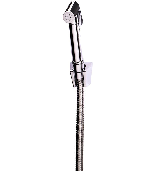 Fabricado en latón. Compuesto por:Mango ducha bidet latónFlexo latón 1,20cmSoporte ABS cromo