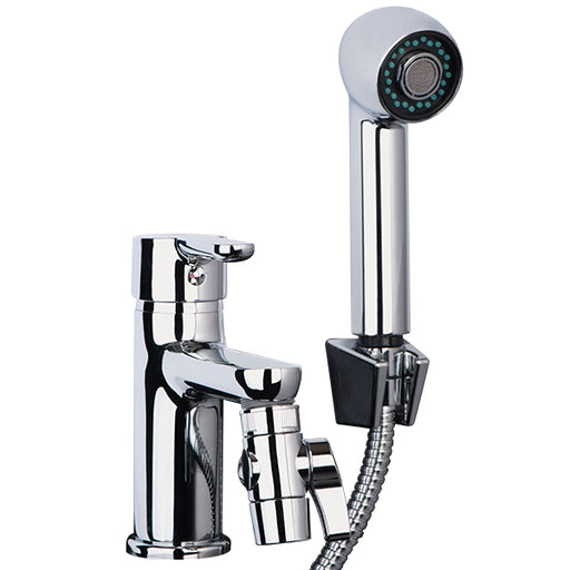 Fabricado en latón. Compuesto por:Llave doble 26L1212Mango ducha bidet latónFlexo latón 1,20cmSoporte ABS cromado