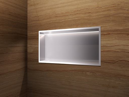 See all the detailsHORNACINA horizontal de 63x33 cm con luz led en el fondo superior Acabado BLANCO MATE Profundidad 10 cm. Fabricada en acero inox. S.304 Disponib...